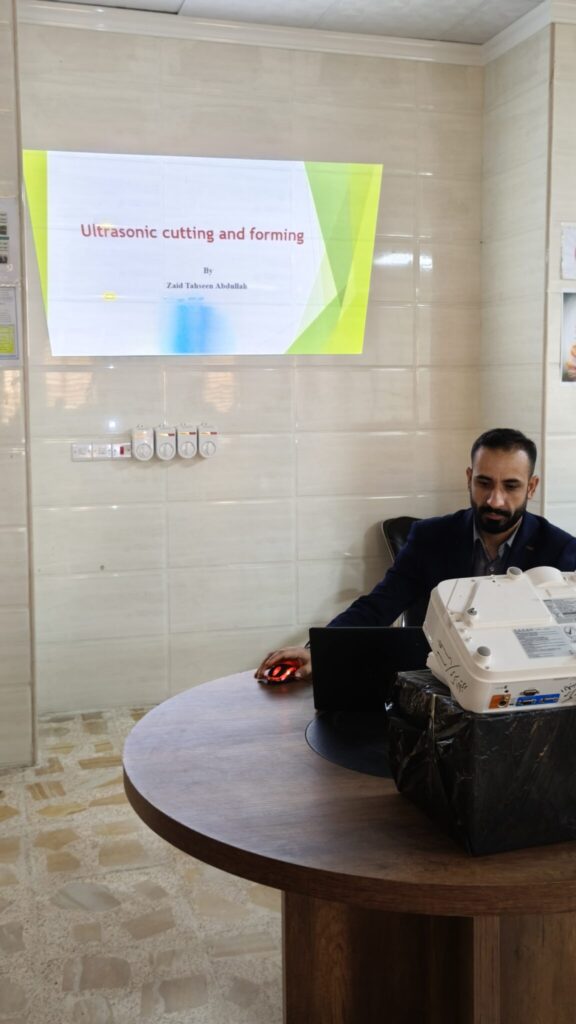برعاية رئيس جامعة الحمدانية الأستاذ الدكتور نشأت مبارك صليوا وإشراف مدير مركز الليزر والفوتونيات الاستاذ منى يوحنا صليوه وبالتعاون مع مركز التعليم المستمر ، اقيمت يوم الاربعاء الموافق 15/ نيسان / 2026 في مركز الليزر والفوتونيات ورشة بعنوان ( القطع والتشكيل بالموجات فوق الصوتية ) ، حاضر فيها المدرس المساعد زيد تحسين عبدالله ، تم تعريف عملية القطع والتشكيل بالموجات فوق الصوتية كأسلوب في التصنيع الحديث باعتماده على الاهتزازات المكيانيكية عالية التردد ، انواع عمليات القطع ومزايا وعيوب هذه الطريقة واهم تطبيقاتها …